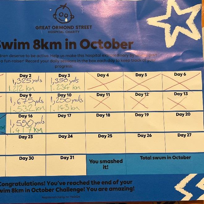 4. Swim 8km in October and share regular updates.