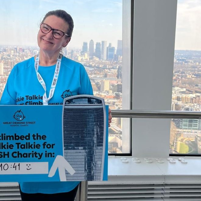 I'll be climbing 36 floors and 896 steps up London's iconic Walkie Talkie building on Saturday 28 March 2026 to help build the new Children’s Cancer Centre at Great Ormond Street Hospital (GOSH).