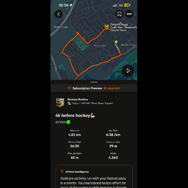 4k before my hockey match.63/100✅
