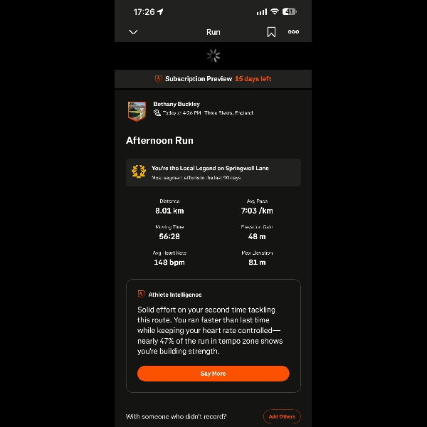 First run✅ Proud I managed 8K. Walked the hills but overall was happy I did it💪🏼🎉I’m running 100km in February for GOSH Charity!