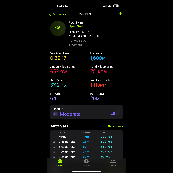1525 meters swam yesterday 🙌Swim 8k in October !!