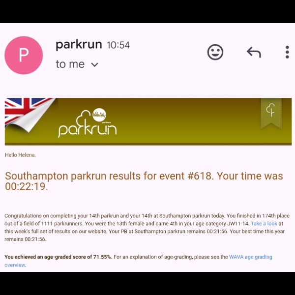 Wow I haven't posted in a while, sorry about that! I have now done 63k!!! With only 10 days left!😬but I know we can do it 🤞🎉🎉🎉today was a fun, we did a 5k parkrun in the morning to kickstart the day and in the evening we went to Southampton common dash in the dark which was absolutely brilliant!!!!!!🎊🌟🎊🌟🎊🌟Seventh day!!!!! 🎉🎉🎉🎉
