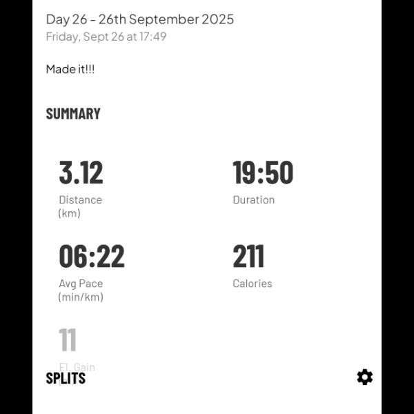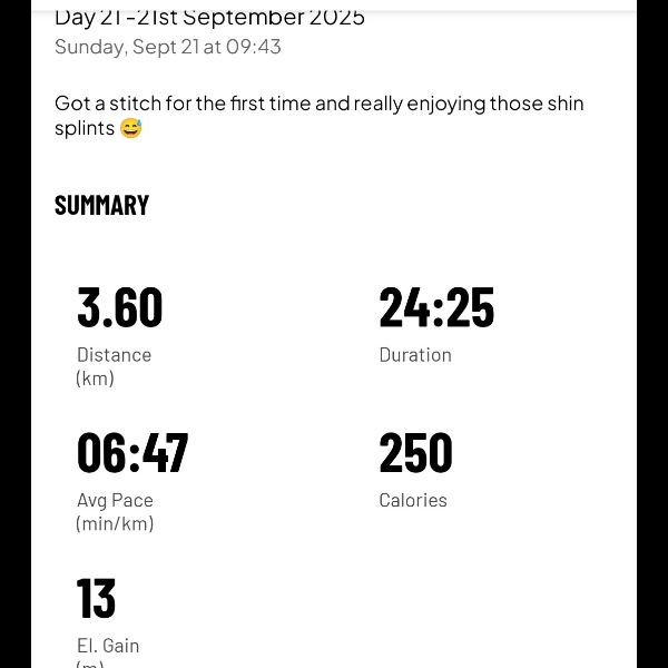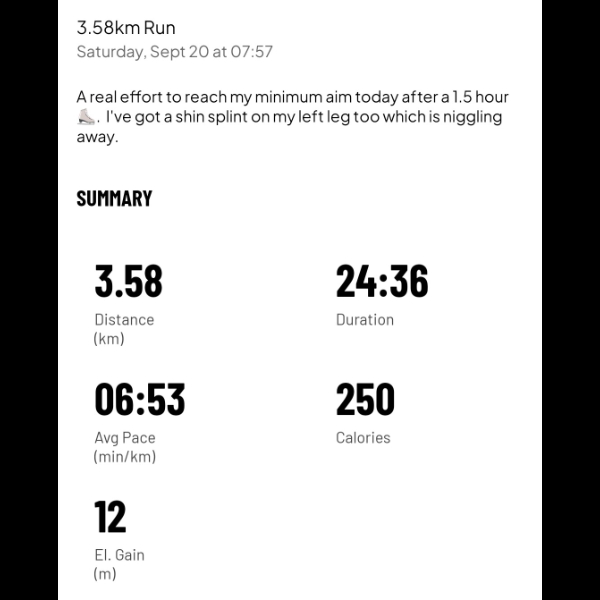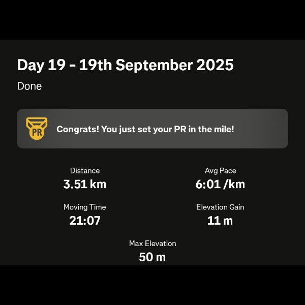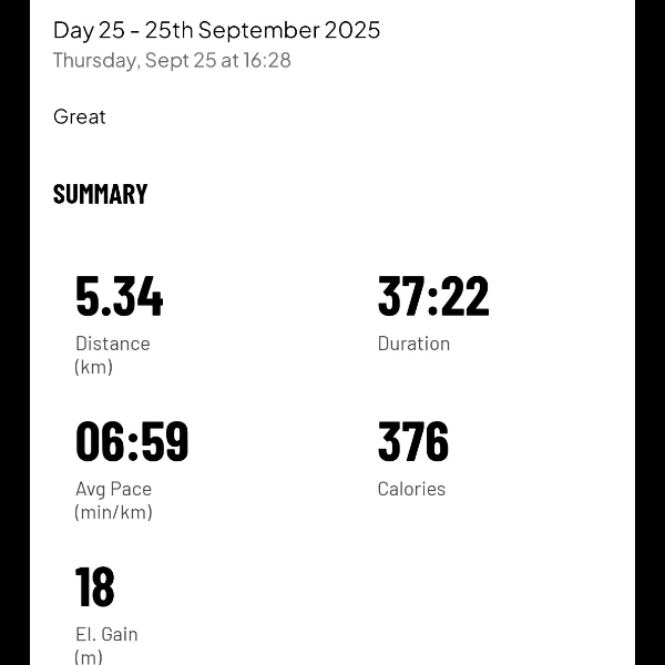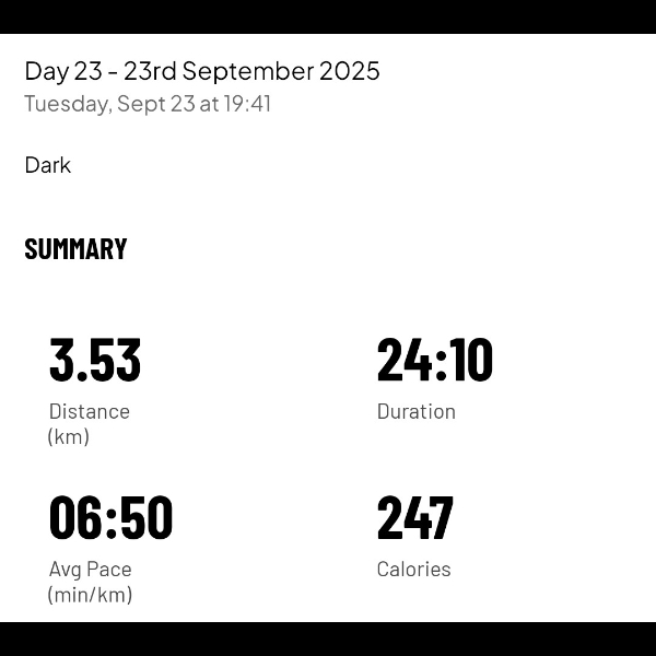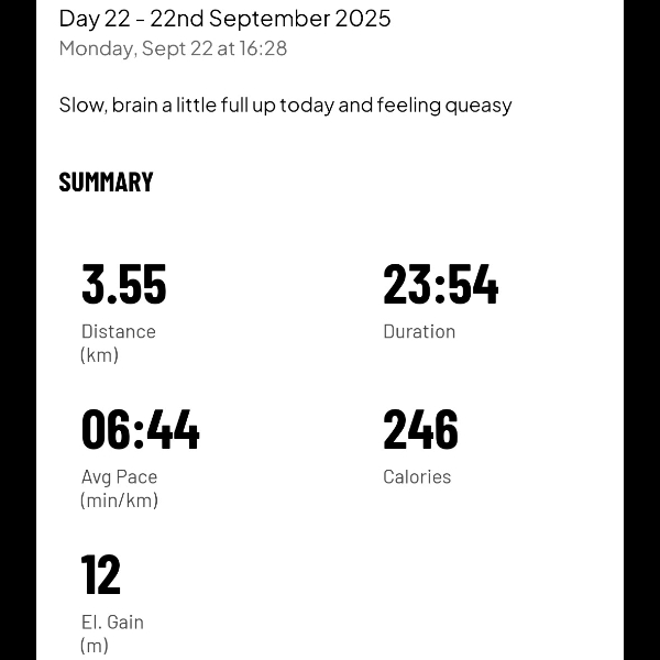 A slow, but solid 3.54km to add to the chart.Day 13 -13th September 2025