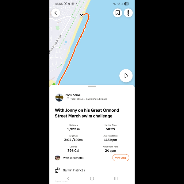 Swam from the Claremont pier to Pakefield church. A good 2k swim with me old partner in crime Mr Ben Hebditch. Thanks for the company mate. I appreciate all the support in messages and donations. Thankyou!For our precious Jack ❤️