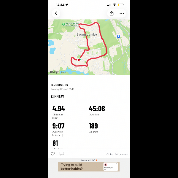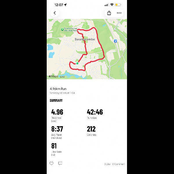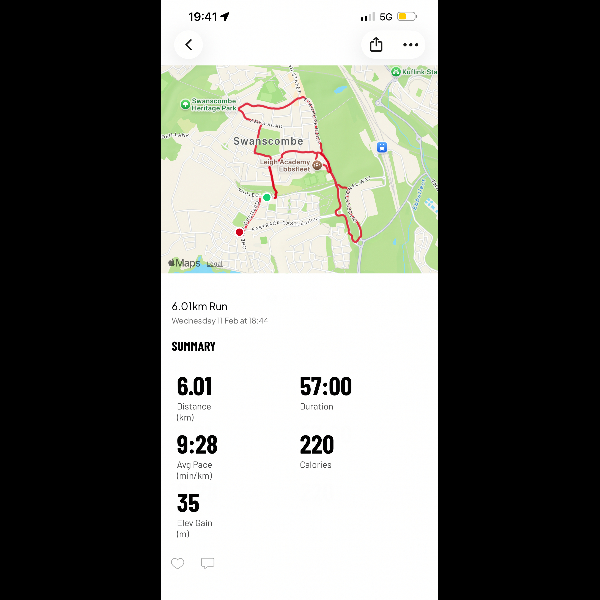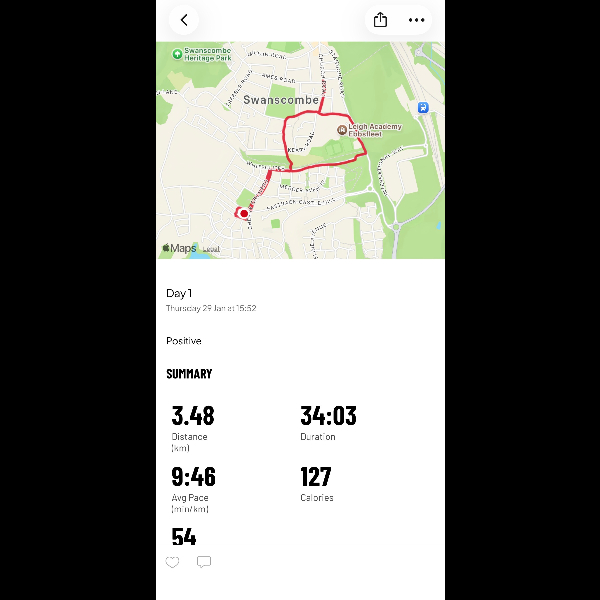 Day 1 complete, was a lot more positive than I thought!! Need to pick up the pace a bit but not too bad for my first day back.I’m running 100km in February for GOSH Charity!