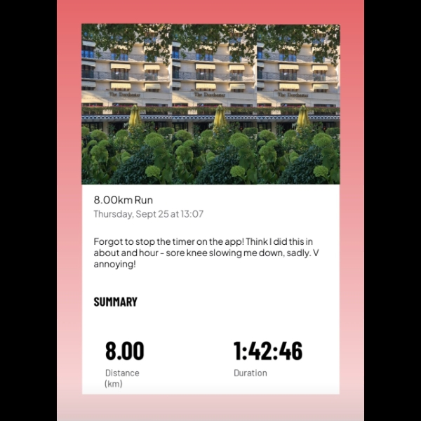 Well done darling- good luck for the month- I’ll be thinking of you every step (as I sit watching the tennis with a chilled Sauv Blanc!!) xxxx