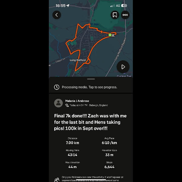 Phew 😮💨 8k done today so now only 56k to go for 100k in September for Great Ormond Street Children’s hospital. Much prefer running when it’s cooler and no dinner to cook for anyone! Fastest 5k in a while as well so I’m proud of that even if it’s still slow. Makes it so much easier to plod round the beautiful countryside here!10th Sept 6k off