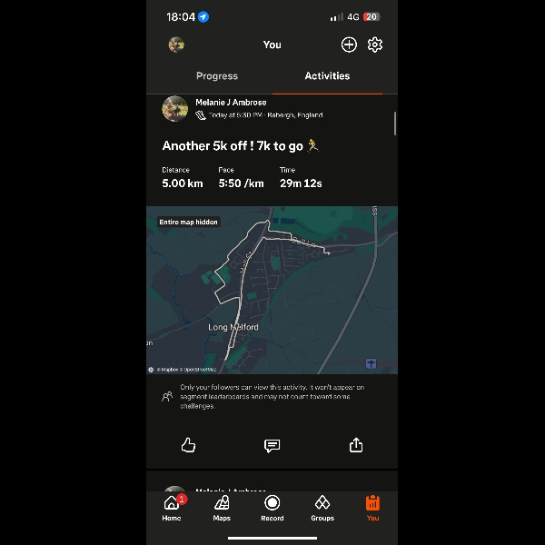 11k today! Took my time, listened to audible on the way out and enjoyed the scenery. Only 29k to go now for 100k in Sept for Great Ormond Street children’s hospital - feeling very proud and very sore on my shin! Thanks again to those who have sponsored me, greatly appreciated and definitely keeping me going as I want this done now 😂 🏃♀️7k off today!! 14/09