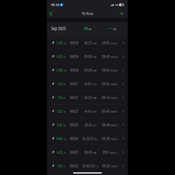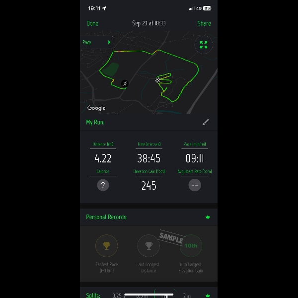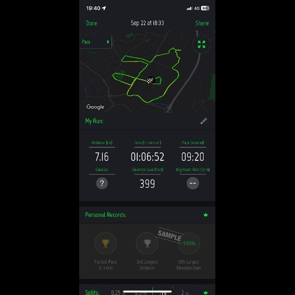 7 miles (11.5k). Really, really could not be bothered to go running after worked today. Tricked myself into by saying just do 3 miles. Then, while out running my route turned 5 miles then 7. Weirdly the longer it went on for the better I felt. By the time I got home the sun has gone down. Not sure I’m ready for runs in the dark yet. Bring back summer!Run 15 - 21.09.25