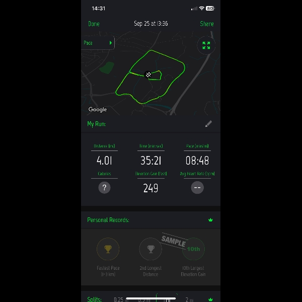3 miles (5k). Second run this morning with family at Run Walk Local.Run 14 - 21.09.25