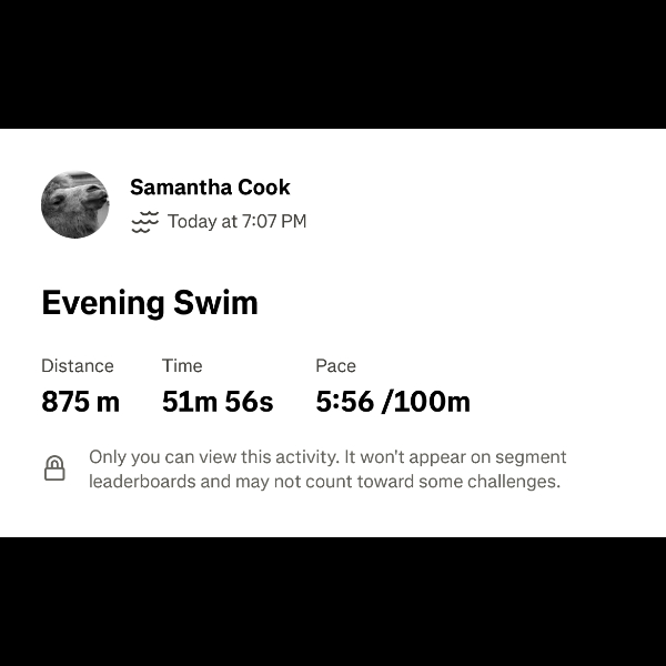 Your generosity, encouragement, and kind words mean so much throughout this challenge. Knowing I have such wonderful support behind me really kept me going through every length of my first swim.