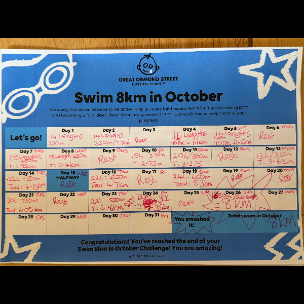 I’m challenging myself to swim 8km this October to raise money for Great Ormond Street Hospital Charity (GOSH Charity).