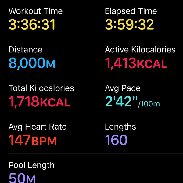 I’m very happy (and relieved!) to share that the swim is now complete after 3.5 hours in the pool on Saturday! I’ve attached some photos for anyone interested in what this looked like on the day.